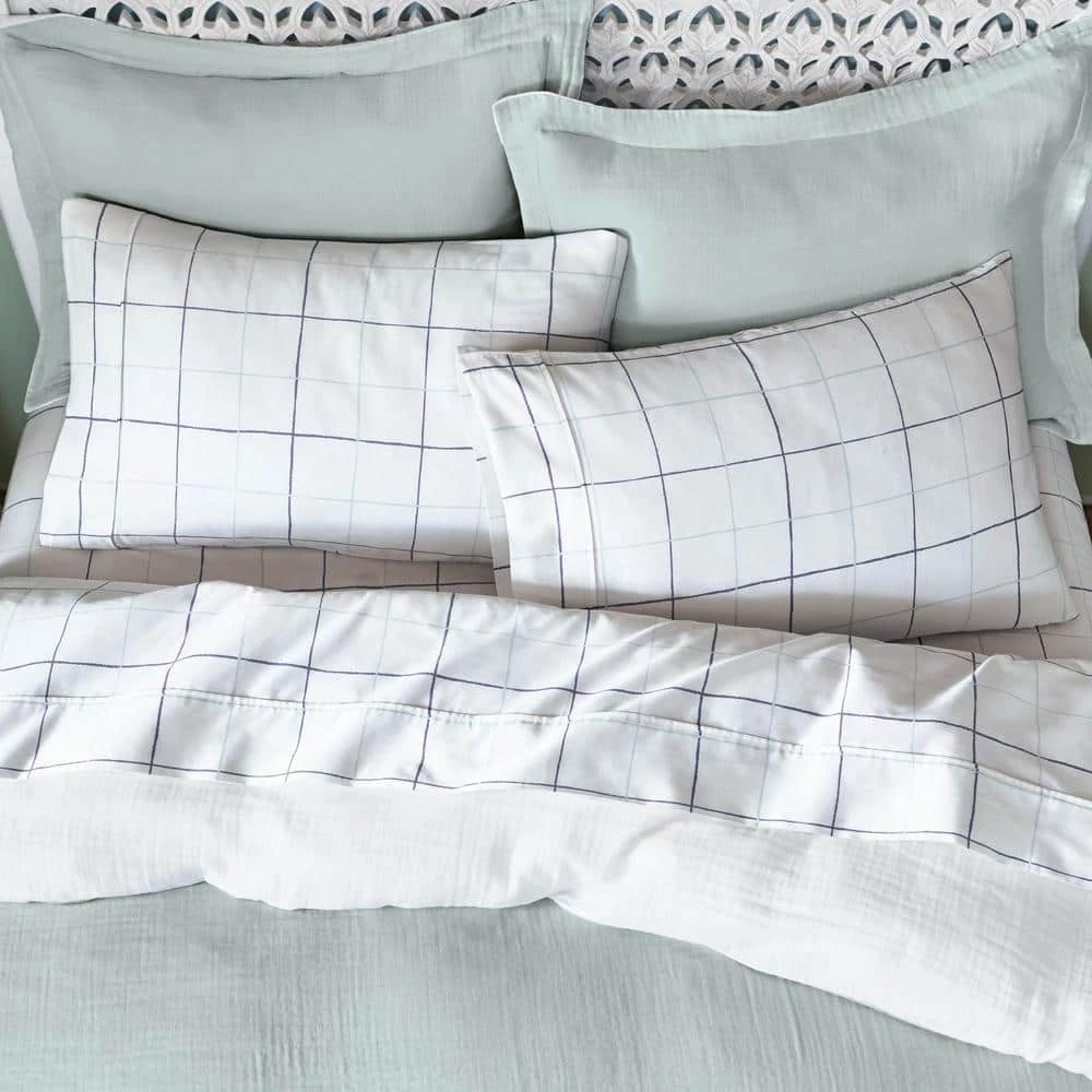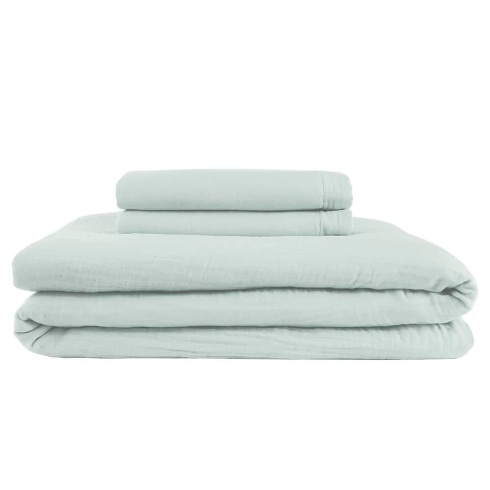 - Reversible sea breeze green and white double cloth gauze king duvet cover set