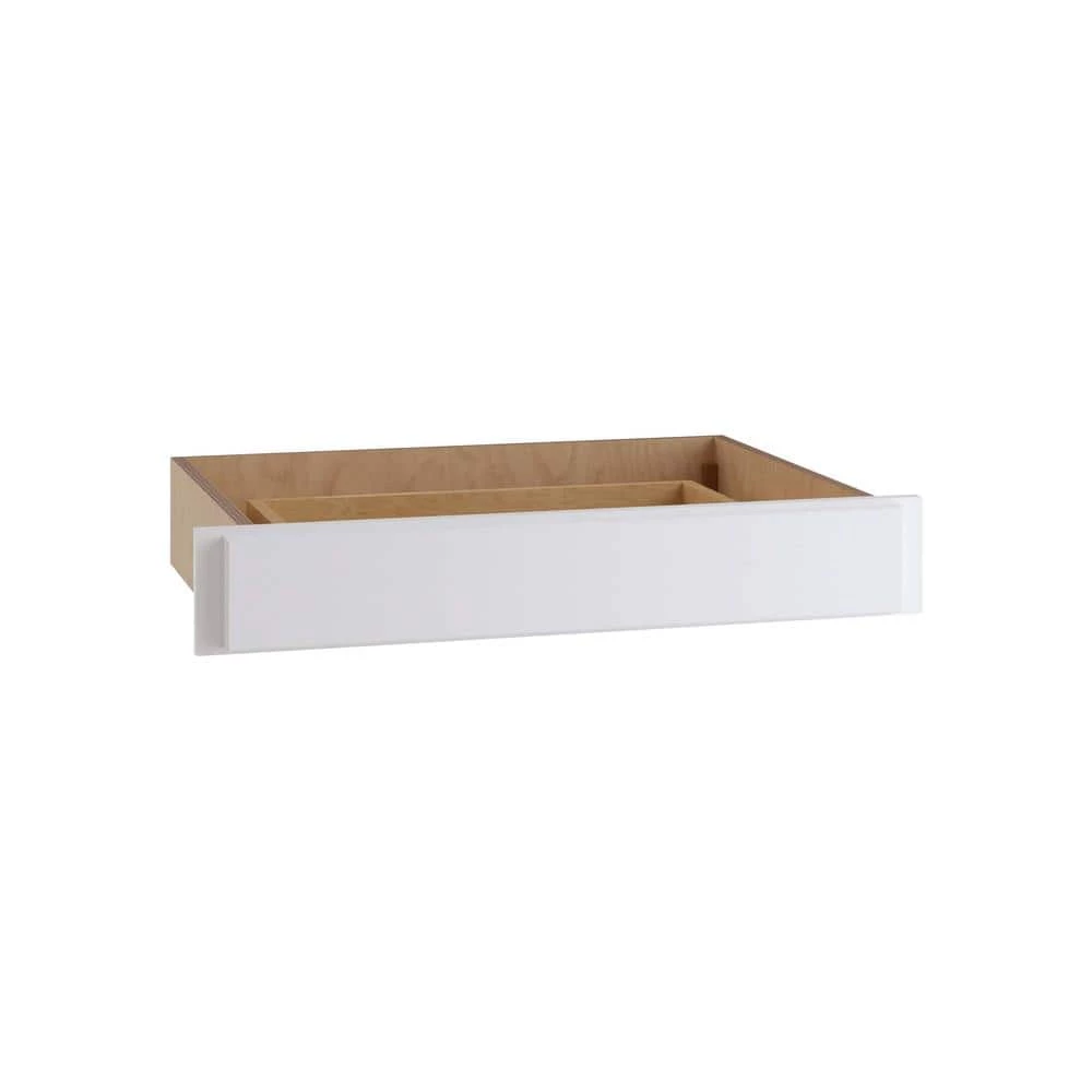 The Newport Pacific White door style from Home Decorators Collection features a clean white painted finish. This wide shaker style will create a clean bright feel in any kitchen. The 3 in. solid MDF frame doors and drawer fronts enclose a clean solid MDF recessed center panel. Cabinets feature CARB compliant all-plywood construction with full-depth 3/4 in. thick adjustable shelves for added storage.