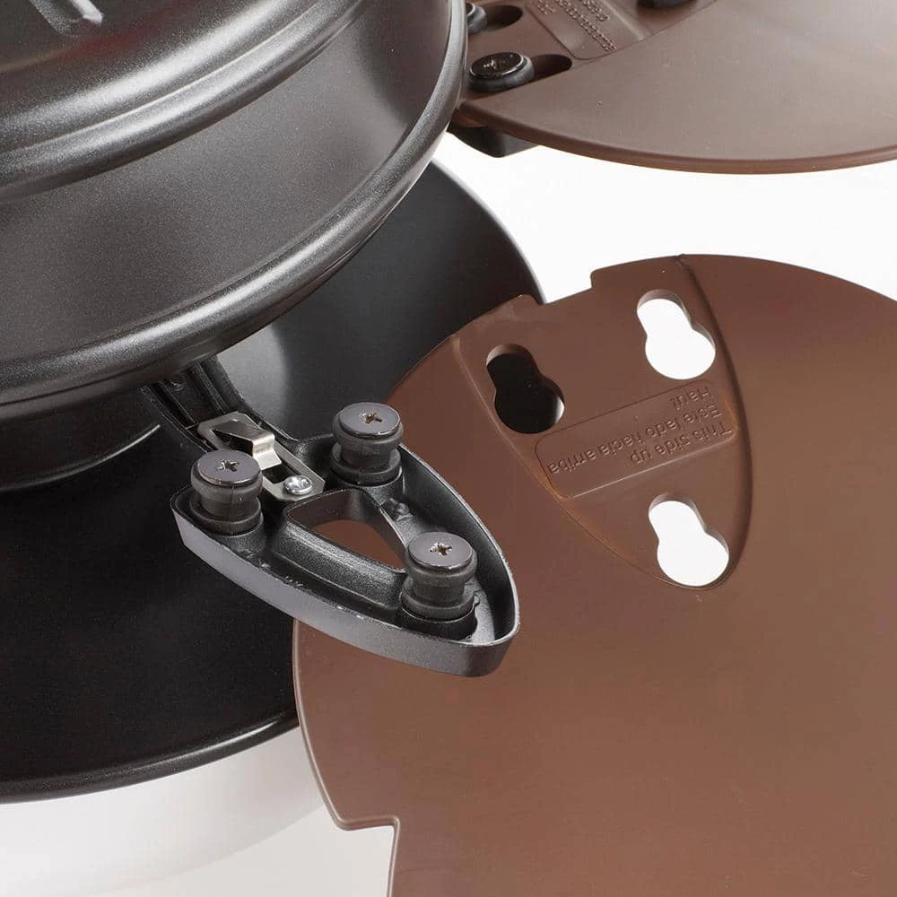 Add a touch of the tropics to your indoor decor or outdoor oasis with the Palm Cove 44 in. Natural Iron Ceiling Fan from Home Decorators Collection. This outdoor rated fan features palm leaf shaped teak-finished blades that beautifully complement the natural iron motor housing and matte opal glass bowl light kit. The tri-mount installation system allows for a variety of mounting options including close-to-ceiling mounting, standard mounting and high or angled ceiling mounting (with extended downrod, sold separately). Made for the outdoors but suitable for indoor installations as well. This fan installs in minutes with incorporated technologies including QuickInstall Blades and AccuArm blade arms and features Quiet Motor Technology Plus for maximum airflow with minimal noise.