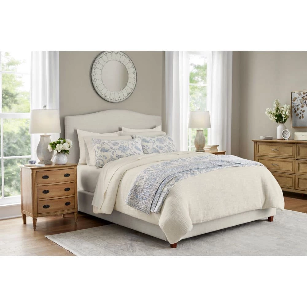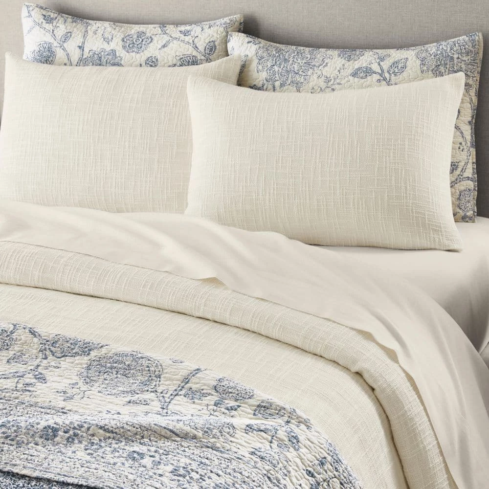 Add soft texture to your bed with this Home Decorators Collection Quinn 3-Piece Ivory Cream Woven Textured Cotton Duvet Cover Set. It’s pristine, creamy ivory colorway offers a crisp, clean look that will match many décor styles and types. This creamy comforter is woven to create an ultra soft and cozy restful retreat, as well as give the duvet cover added style interest with subtle texture. Made with 100% cotton, this duvet cover set lets you sleep in total warmth and comfort. The button closure and corner ties keep your duvet insert or comforter in place without bunching. This 3-piece set includes one full/queen duvet cover and two standard shams, and its machine washable construction is effortless to maintain. You can be confident in your purchase as this duvet cover set is STANDARD 100 by OEKO-TEX certified, meaning it has been independently tested for harmful substances according to strict scientific criteria that go beyond global legal regulations.
