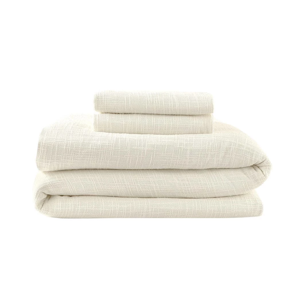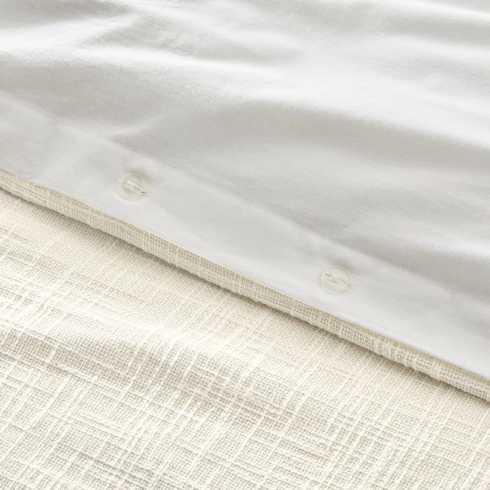 - Neutral, creamy ivory woven textured duvet cover set adds soft style and visual interest to your bed