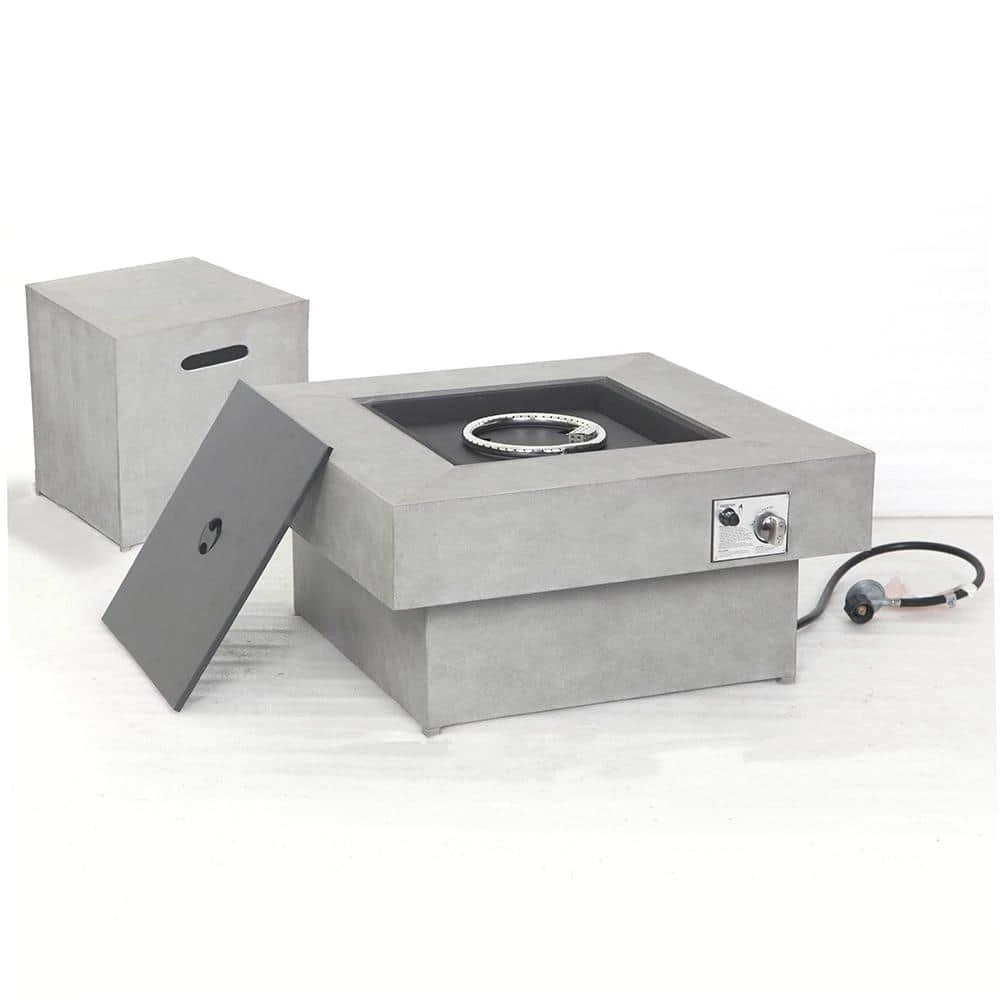 Add ambiance and warmth to your outdoor living space with the Rutherford low profile gas fire pit. The concrete-look tile top, angular design and clean lines create a beautiful, modern fire table that will fit a variety of decor styles. The Rutherfold tank holder, included with the fire table, cleverly conceals your 20 lbs. propane tank and doubles as a side table.