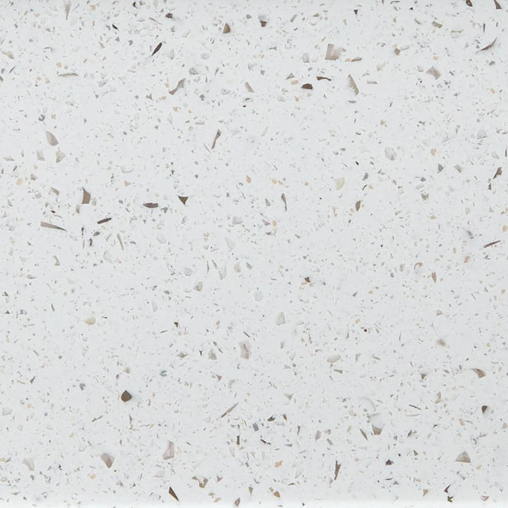 - Arctic-colored solid surface technology vanity top includes integral white sink for easy cleaning