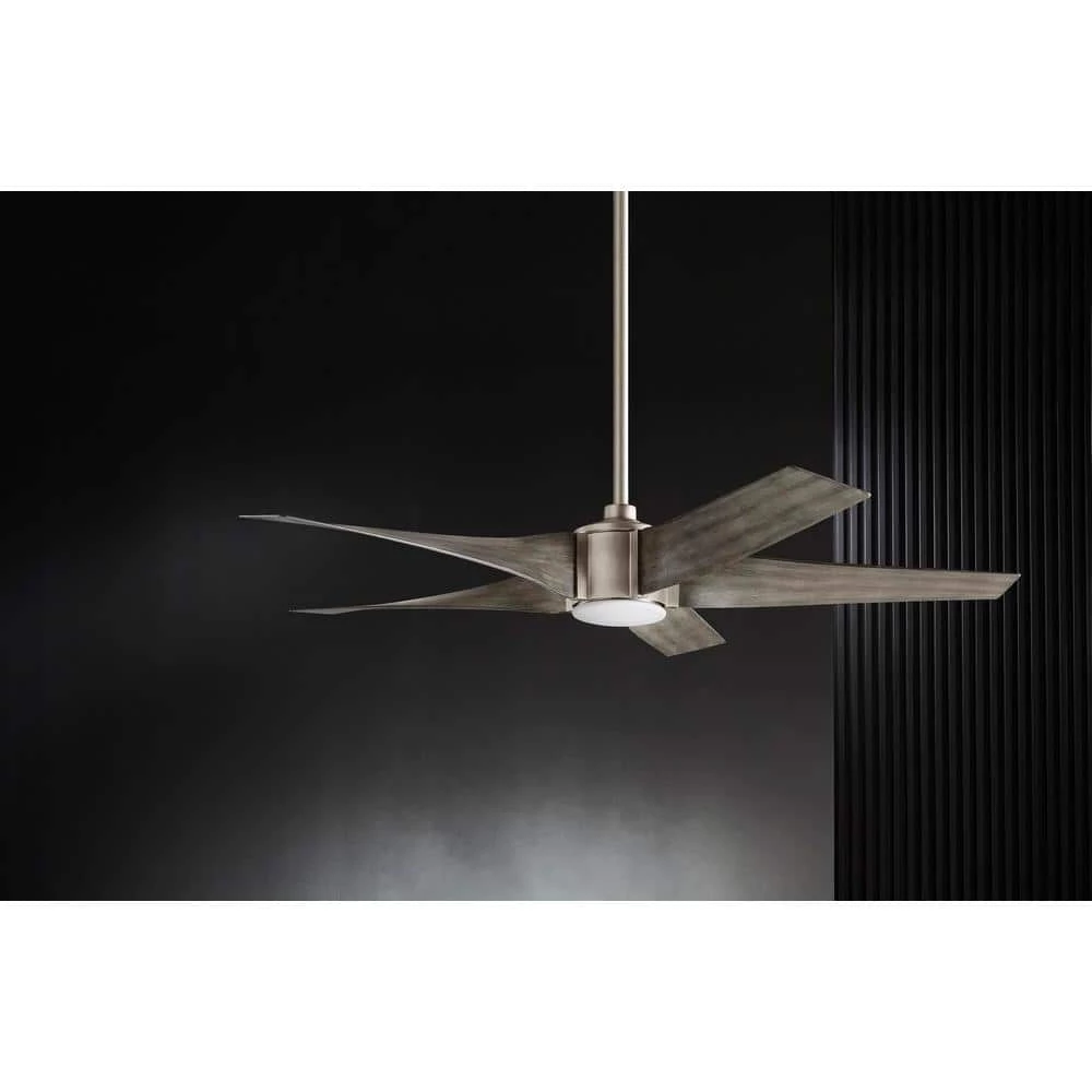 Add an updated look to your contemporary decor with the 56 in. Sky Parlor LED Burnished Nickel Ceiling Fan. Ideal for large spaces, this fan features 5 burnt silver finish blades to help move air efficiently, with quiet, wobble-free operation. The handy remote control offers independent light and speed controls. DC motor fans are 70% more energy efficient than AC motor fans (when comparing efficiency (CFM/W) of DC vs AC motors in published FTC Energy Guides for ceiling fans).