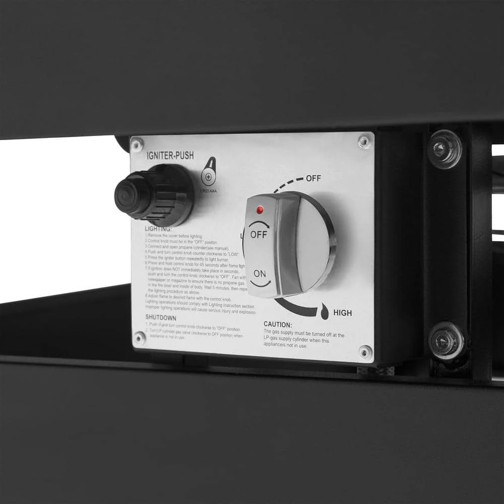 - 50,000 BTU with adjustable flame, electric starter, and safety shut off