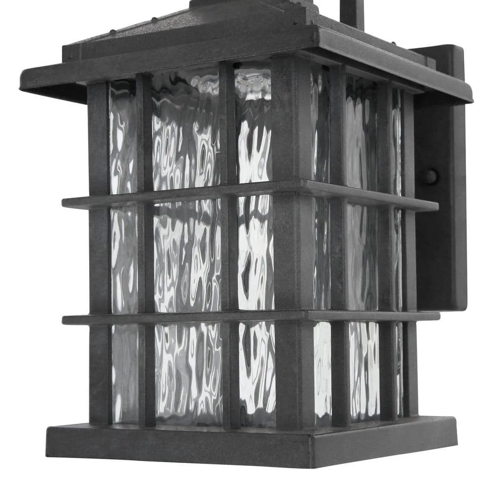 The versatile and exclusive Summit Ridge Motion Sensor Outdoor Small Lantern from Home Decorators Collection features a strong, sleek frame and windowpane detailing’s. It’s inspired by the classic Arts and Crafts movement and graced with rippling water glass panels that create a warm, welcoming glow. This outdoor wall mount lantern comes equipped with energy efficient LEDs that provide 50,000 hours of lamp life and 381 Lumens of output. The light hue emitted is 3000K of bright white light and the lantern features an amazing dusk-to-dawn setting that allows it to turn on and off at dawn. The motion sensor sensitivity is adjustable and offers 150 degrees of visibility and detects up to 30 ft.