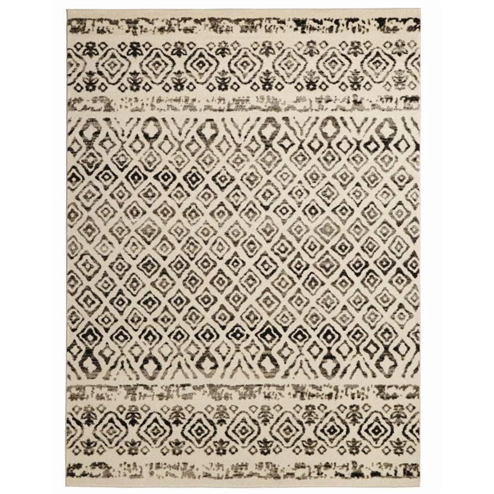 This beautiful Tribal Essence Ivory 7 ft. 10 in. X 9 ft. 10 in. Area Rug is a great welcoming addition to your home. Ideal for helping to create a peaceful environment, this rug boasts an ivory color, adding to your welcoming room decor. This loomed rug features a modern style and a geometric pattern. Created from durable synthetic polypropylene, it will resist stains and fading. For an extended lifespan, a rug pad is recommended.