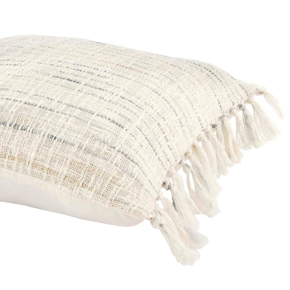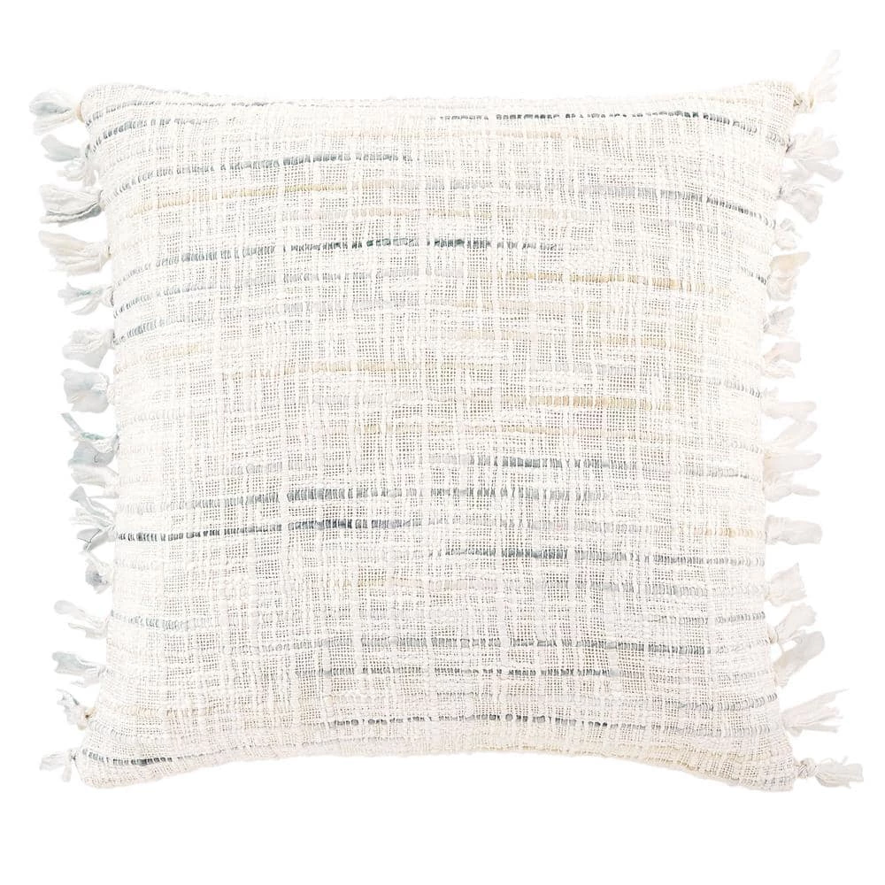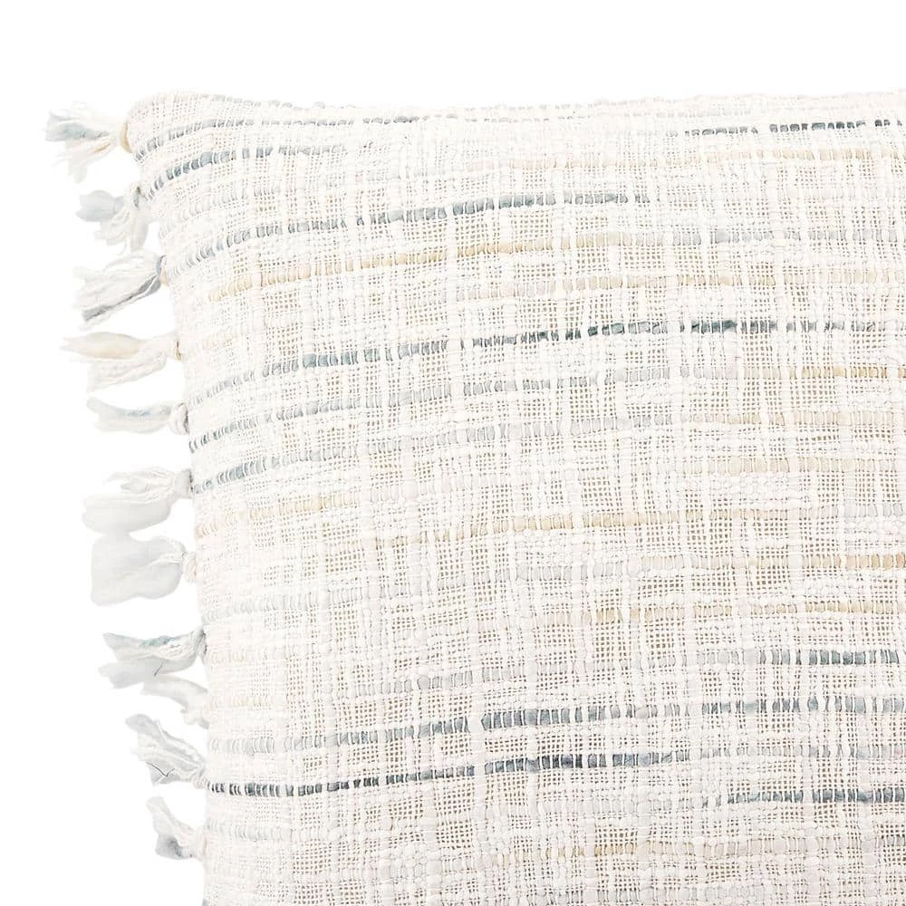 The coastal inspired designs showcased in our Home Decorators Collection Throw Pillow will bring the beach to your decor space. The meticulously woven construction of this square standard pillow boasts durability and will provide natural charm into your decor space. Featuring a white striped design with tassels, this square throw pillow is perfect for coordinating with other decorative pillows and pieces. Both the decorative cover and poly-fill insert is included, and the zipper closure offers easy removal for added convenience. For best results, spot clean only.