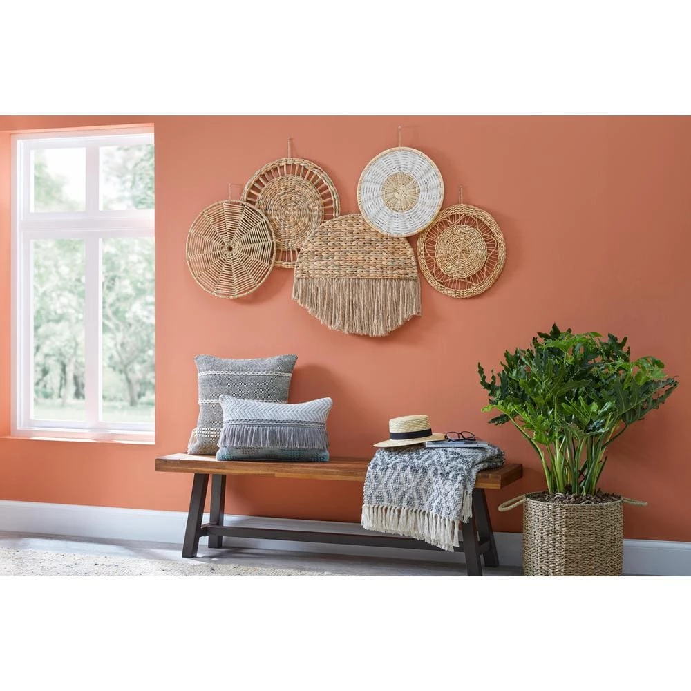 Dress up your walls with this set of Woven Assorted Hanging Baskets Wall Art Set. A woven appearance fills your space with texture, while the natural brown hues adorn your abode with an organic, collected look, fitting in with your interior color palette and complementing your vintage, rustic or boho style. Hang above your bed or sofa for added depth. Including five pieces, this set of decorative hanging wall baskets makes it easy to mix, match and arrange a delightful display.