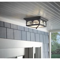 Home Decorators Collection Blakeley Transitional 2-Light Black Outdoor Pendant with Beveled Glass