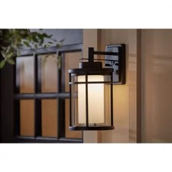 Home Decorators Collection 1-Light Oil Rubbed Bronze LED Outdoor Wall Mount Lantern with White Glass
