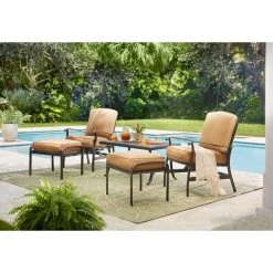 Home Decorators Collection Kingsbrook Commercial Aluminum Wicker Outdoor Ottoman with Tan Cushion