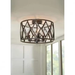 Home Decorators Collection Tessali 16 in. 3-Light Bronze Prismatic Glass Flush Mount Ceiling Light