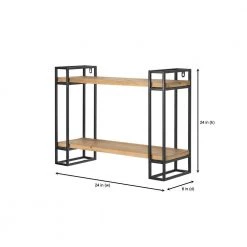 Home Decorators Collection 24 in. H x 24 in. W x 8 in. D Wood and Black Metal Wall-Mount Bookshelf