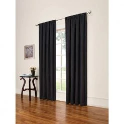 Home Decorators Collection Thermal 37 in. W x 63 in. L Room Darkening Window Curtain in Black